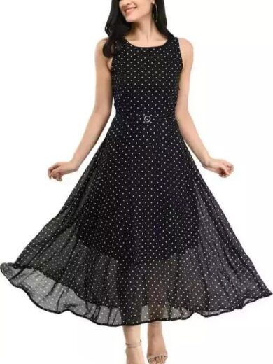 AZUREISHH Women's Sleeveless Black Polka Dot Fit & Flare Midi Dress – Belted Retro-Inspired Dress