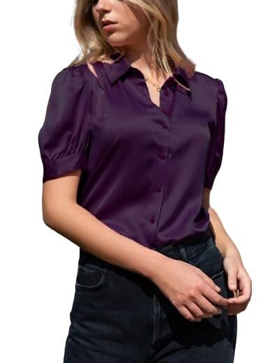 BHIKADIYA Women Regular Fit Solid Cut Away Collar Casual Shirt, Smocked Blouse for Women's Point Collar Puff Sleeve Vintage Peasant Top