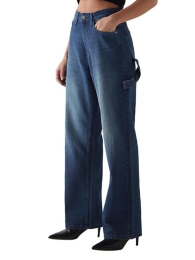 Bewakoof Women's 100% Cotton Solid Wide Leg Jeans|Wide Leg Jeans – Oversized Fit | Full Length | Relaxed Denim