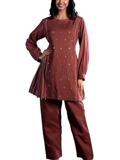 Avaan Cotton Cord Set Dress for Women, Cord Dress for Women Stylish, Rust Color Dress for Women, Straight Tunic with Trousers